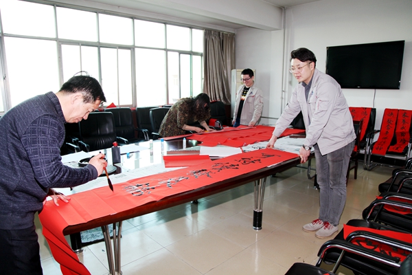 新春臨近,千家萬戶都要張貼春聯,是象征吉祥、表達人們向往美好生活的傳統風俗。1月31日,美鑫公司特邀書法愛好者書寫春聯,將節日的祝福提前送到員工身邊。 只見書法老師在提前裁好的紅紙上盡情潑墨、筆走龍蛇,一張張散發著清新墨香的喜慶大“福”字,多種書體龍飛鳳舞各顯神韻,一副副春聯盡顯眼前。機關辦公樓的職工也紛紛聞訊趕到現場觀看書法老師書寫對聯,不時發出一聲聲驚嘆,也為書法老師出色的毛筆字喝彩。看,那對聯的內容也是相當的豐富:有對美鑫的祝福“以人為本科學發展循環經濟結碩果,砥礪奮進逐夢前行示范園區譜新篇”,也有年輕人對新年的期望“暴瘦”等。 “煤電鋁循環打造千秋昌盛,可持續發展鑄就輝煌大業。”書法老師為美鑫公司書寫了幾十副對聯,為年輕人也送出了新年期望十余張字。拿到祝福的職工也紛紛對老師表示感謝,希望自己在新的一年中能夠向手里春聯寫的那樣:快樂、暴瘦、暴美。 |