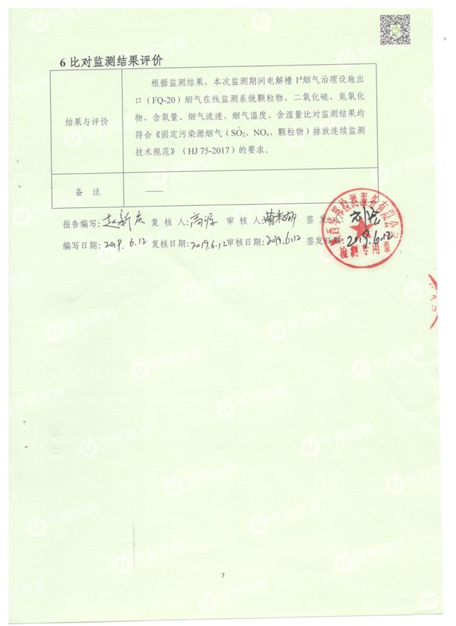 1.1電解槽煙氣治理設(shè)施總排口CEMS在線設(shè)備比對監(jiān)測