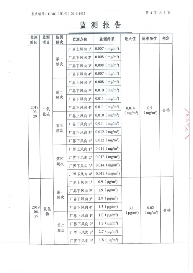 (1)監(jiān)測指標:顆粒物、二氧化硫、氟化物 (2)監(jiān)測點位:廠區(qū)上風向設(shè)1個監(jiān)測點、下風向設(shè)3個監(jiān)測點。 (3)監(jiān)測頻次:每季度監(jiān)測一次,連續(xù)監(jiān)測1天,每天4次。 2 水污染源監(jiān)測