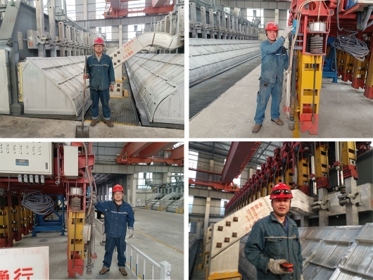 責任鑄品質。提升作業,不僅僅考驗著作業人員的技術,更考驗著大家的責任心。每次提升時,地面人員指揮天車將提升框架慢慢落下,順利“抱”住陽極導桿,松開小盒卡具,按下槽控箱上的“抬母線”按鈕,看著緩緩升起的水平母線和平穩的槽狀況,他們緊繃的心才慢慢恢復平靜。他們是工友但更像是兄弟,作業前會相互檢查勞動防護用品,相互提問“母線提升作業”操作規程注意事項;對于作業時發現的問題和存在的疑惑,他們會及時交流解決,為了一個不起眼的技術問題也會爭的面紅耳赤。工作之余,他們還積極投身于“五小革新”的改造創新中來,參與制作電解槽電壓聲光報警器、虹吸式吸塵器等項目,為車間技術提升貢獻自己的力量。