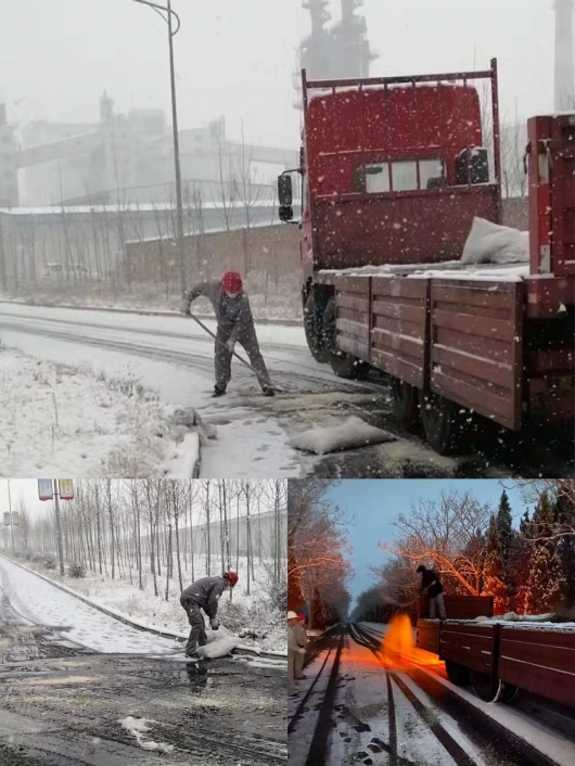 雪已經(jīng)斷斷續(xù)續(xù)下了三天,天氣預(yù)報(bào)顯示接下來還將持續(xù)數(shù)天,工藝車隊(duì)黨支部號(hào)召車間黨員、積極分子、班組長(zhǎng)持續(xù)堅(jiān)守一線,及時(shí)清理積雪。目前,在各個(gè)坡道防滑現(xiàn)場(chǎng)、道路運(yùn)輸彎道處、叉車倒運(yùn)鋁錠現(xiàn)場(chǎng),隨處可見堅(jiān)守的這群人,他們身先士卒、率先垂范,用行動(dòng)全力保障公司職工出行安全和生產(chǎn)安全。