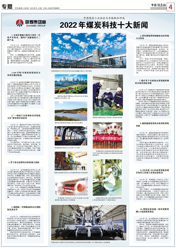 2022年12月31日,中國(guó)煤炭工業(yè)協(xié)會(huì)與中國(guó)煤炭報(bào)聯(lián)合評(píng)選并發(fā)布2022年煤炭行業(yè)十大新聞、煤炭科技十大新聞、煤炭企業(yè)十大新聞,陜煤集團(tuán)多條新聞獲評(píng)入選,展現(xiàn)了2022年企業(yè)發(fā)展多個(gè)領(lǐng)域的成績(jī)。 其中,2022年煤炭行業(yè)十大新聞第5條《煤炭企業(yè)國(guó)企改革三年行動(dòng)成效顯著》提到:陜煤集團(tuán)形成了“第一議題”制度全覆蓋、董事會(huì)應(yīng)建盡建全覆蓋,黨委會(huì)前置研究重大經(jīng)營(yíng)管理事項(xiàng)清單全建立、董事會(huì)重大決策部署跟進(jìn)督辦機(jī)制全建立的“兩覆蓋、兩建立”工作機(jī)制;修訂完善現(xiàn)代企業(yè)法人治理結(jié)構(gòu)等16項(xiàng)改革及相關(guān)制度,外部董事占多數(shù)企業(yè)完成率達(dá)100%。 同時(shí),《全球在建最大煤化工項(xiàng)目一次性開(kāi)車成功,順利產(chǎn)出聚酯級(jí)乙二醇產(chǎn)品》《井下粉塵治理技術(shù)取得重大創(chuàng)新》《2米采高/450米高度智能化超長(zhǎng)綜采工作面工業(yè)性試驗(yàn)成功》入選2022年煤炭科技十大新聞;《陜煤集團(tuán)參與制定的三項(xiàng)化工用煤國(guó)家標(biāo)準(zhǔn)實(shí)施》2022年煤炭企業(yè)十大新聞,并選用“陜煤集團(tuán)榆林化學(xué)年產(chǎn)180萬(wàn)噸乙二醇工程打通全流程”新聞圖片。 2022年煤炭行業(yè)十大新聞《煤炭企業(yè)國(guó)企改革三年行動(dòng)成效顯著》:2022年是國(guó)企改革三年行動(dòng)收官之年,各大型國(guó)有煤炭企業(yè)紛紛交出優(yōu)異成績(jī)單。國(guó)家能源集團(tuán)國(guó)企改革三年行動(dòng)主體任務(wù)基本完成,應(yīng)建董事會(huì)范圍內(nèi)的508家企業(yè)全部實(shí)現(xiàn)應(yīng)建盡建和外部董事占多數(shù);經(jīng)理層任期制和契約化管理更加精準(zhǔn),收入分配持續(xù)向基層一線和關(guān)鍵崗位傾斜。陜煤集團(tuán)形成了“第一議題”制度全覆蓋、董事會(huì)應(yīng)建盡建全覆蓋,黨委會(huì)前置研究重大經(jīng)營(yíng)管理事項(xiàng)清單全建立、董事會(huì)重大決策部署跟進(jìn)督辦機(jī)制全建立的“兩覆蓋、兩建立”工作機(jī)制;修訂完善現(xiàn)代企業(yè)法人治理結(jié)構(gòu)等16項(xiàng)改革及相關(guān)制度,外部董事占多數(shù)企業(yè)完成率達(dá)100%。河南能源集團(tuán)國(guó)企改革三年行動(dòng)方案中的164項(xiàng)具體任務(wù)已全部完成,中國(guó)特色現(xiàn)代企業(yè)制度更加成熟定型,產(chǎn)業(yè)資產(chǎn)結(jié)構(gòu)更加優(yōu)化,市場(chǎng)化經(jīng)營(yíng)機(jī)制進(jìn)一步完善,企業(yè)自主創(chuàng)新活力更加充足。 2022年煤炭科技十大新聞《全球在建最大煤化工項(xiàng)目一次性開(kāi)車成功,順利產(chǎn)出聚酯級(jí)乙二醇產(chǎn)品》:2022年10月,陜煤集團(tuán)榆林化學(xué)公司負(fù)責(zé)的煤炭分質(zhì)利用制化工新材料示范項(xiàng)目180萬(wàn)噸/年乙二醇工程單系列一次性開(kāi)車成功,順利產(chǎn)出聚酯級(jí)乙二醇產(chǎn)品。這是全球在建的最大煤化工項(xiàng)目。 目前,乙二醇裝置全系列運(yùn)行平穩(wěn),各類參數(shù)正常,實(shí)現(xiàn)全流程打通并順利產(chǎn)出聚酯級(jí)乙二醇產(chǎn)品。項(xiàng)目建成后,可減少乙二醇產(chǎn)品進(jìn)口數(shù)量,提高我國(guó)高端化學(xué)品質(zhì)量,助推高技術(shù)含量、高產(chǎn)品附加值的新材料產(chǎn)業(yè)發(fā)展。 2022年煤炭科技十大新聞《井下粉塵治理技術(shù)取得重大創(chuàng)新》:2022年11月,由陜煤集團(tuán)紅柳林礦業(yè)公司與中國(guó)工程院院士袁亮合作開(kāi)展的陜北礦區(qū)煤礦空氣凈化與職業(yè)健康基礎(chǔ)研究及關(guān)鍵技術(shù)裝備與示范項(xiàng)目,取得最新成果。研究人員在采掘區(qū)域粉塵運(yùn)移規(guī)律及防控技術(shù),煤礦粉塵、尾氣致病機(jī)理與保障體系,礦井空氣質(zhì)量在線監(jiān)測(cè)與健康風(fēng)險(xiǎn)預(yù)警等方面取得成果,并提出井下采掘工作面區(qū)域粉塵“分源—分區(qū)—分級(jí)—分策”精準(zhǔn)治理新方法,有效降低了作業(yè)場(chǎng)所粉塵濃度。 此外,今年,中國(guó)煤炭科工集團(tuán)重慶研究院聯(lián)手曹家灘礦業(yè)公司,攻克井下粉塵防治及智能管控關(guān)鍵技術(shù);中國(guó)礦業(yè)大學(xué)在國(guó)內(nèi)首次提出巷/隧道干式濾筒過(guò)濾除塵新技術(shù)。這些舉措有助于保障井下職工職業(yè)健康,彰顯了煤炭行業(yè)科技保安力量。 2022年煤炭科技十大新聞《2米采高/450米高度智能化超長(zhǎng)綜采工作面工業(yè)性試驗(yàn)成功》:2022年1月,陜煤集團(tuán)小保當(dāng)?shù)V業(yè)公司二號(hào)煤礦2米采高/450米高度智能化超長(zhǎng)綜采工作面,日產(chǎn)量突破5.2萬(wàn)噸、單月產(chǎn)量達(dá)到108萬(wàn)噸,標(biāo)志著高度智能化超長(zhǎng)綜采工作面工業(yè)性試驗(yàn)成功。 相關(guān)人員表示,450米高度智能化超長(zhǎng)綜采工作面的探索與實(shí)踐,廣泛吸收了來(lái)自行業(yè)的開(kāi)采需求。通過(guò)自主研發(fā)與應(yīng)用,研究人員為我國(guó)2米左右煤層開(kāi)采創(chuàng)新了思路、提供了方案。目前,450米高度智能化超長(zhǎng)綜采工