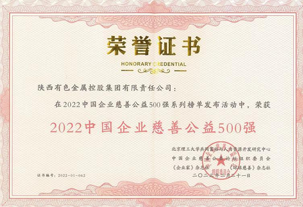近日,2022中國企業慈善公益500強發布暨第六屆中國企業慈善公益論壇在重慶涪陵舉行,陜西有色金屬集團榮獲“2022中國企業慈善公益500強”榮譽稱號。 近年來,陜西有色金屬集團在實現快速發展的同時,不忘回饋社會,在定點幫扶、產業幫扶、援藏、愛心捐贈等領域,先后投入3.6億元鞏固拓展脫貧攻堅成果同鄉村振興有效銜接,投入資金6478萬元援助西藏阿里地區,投入5000萬元援建勉縣災區,向青海玉樹災區和陜南災區捐款3500萬元,向省慈善協會社會扶貧網捐贈400萬元,向退役軍人關愛基金捐贈200萬元,助力第十四屆全國運動會組委會提供贊3000萬元。為脫貧攻堅成果鞏固與鄉村振興有效銜接、疫情防控、重大自然災害、民生工程建設中做出了積極貢獻。 |