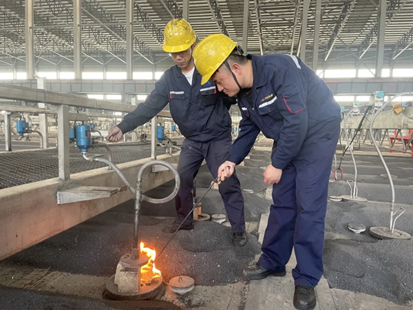 為進一步滿足陽極代加工生產任務需求,有效釋放富裕產能,5月6日,陽極分公司焙燒車間點火啟動2#焙燒爐2#燃燒系統,分公司領導及部室相關人員到場指導。此次點火啟動后,預計預焙陽極產量較之前可增長25%。 啟動前夕,為保證點火啟動順利完成,分公司相關部門、車間結合前期啟動經驗,重新完善審定啟動方案及應急預案,安排專人反復檢查爐室及設備狀況,組織調溫工進行點火啟動方案學習及應急演練。烘爐作業嚴格按照32h移爐周期,在2#焙燒爐43#爐室,實行3室點火運行按移爐周期逐步恢復至7室運轉。啟動過程中,作業人員協同配合,由1火道至9火道交替點燃,手動調整控制火焰,在調溫工的操作下,點火啟動一次性成功。 在接下來的烘爐階段,車間將持續加強現場巡視檢查,嚴肅24小時值守紀律,及時關注火焰情況并對出相應調整,避免噴氣量過大發生“聚氣”現象,確保燃燒架溫度能按照既定升溫速率穩步提升。 |
