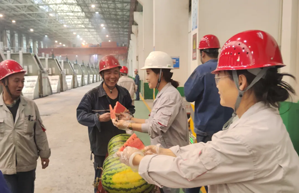 連日來驕陽似火,高溫天氣持續籠罩,陜西美鑫鋁鎂合金分公司生產一線一派繁忙景象,“奮戰二季度 實現雙過半”活動正如火如荼的進行著。公司女工委積極響應公司黨政號召,6月14日下午,在電解一、二車間開展“戰酷暑、保安全 與一線職工肩并肩”夏季送清涼活動,為奮戰在高溫一線的職工送去一絲清涼和一份關懷。 “師傅,辛苦了!來,吃塊西瓜解解暑。高溫天氣再加上高溫的工作環境,一定要多補充水分,做好防暑降溫工作,照顧好自己的身體......” “安全第一啊,安全生產最重要,這個月又是安全生產月,工作時一定切記,別違規違章.......” 陣陣清涼,是組織的關愛;句句叮囑,將關心轉化為對安全生產的期盼。職工們也紛紛表示,在接下來的工作中要繼續發揚吃苦耐勞、求真務實的精神,以更加飽滿的熱情投入到安全生產中去,力爭實現時間任務雙過半的生產目標。 |