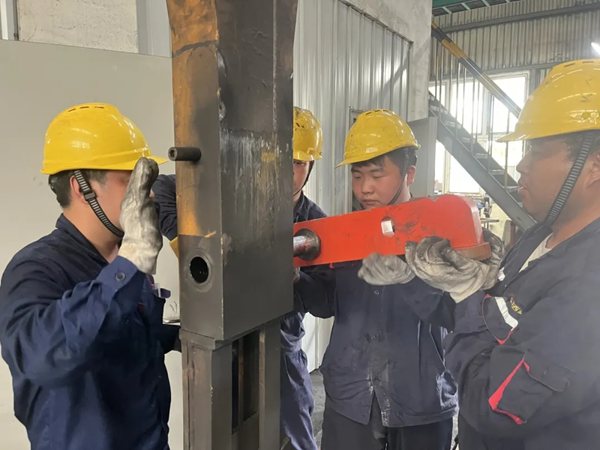 為確保陽極自產(chǎn)塊及代焙塊的生產(chǎn)任務(wù)順利完成,近期,陽極分公司焙燒車間對1#多功能天車夾具夾釘進(jìn)行了更換,以便增大夾具與炭塊間的摩擦阻力,保障設(shè)備生產(chǎn)安全。 車間合理安排調(diào)配,討論制定了詳細(xì)的方案,利用生產(chǎn)間隙集中力量進(jìn)行更換。由車間領(lǐng)導(dǎo)現(xiàn)場統(tǒng)籌安排,設(shè)備專責(zé)協(xié)調(diào)備件、全程跟進(jìn),安全員現(xiàn)場安全檢查、責(zé)任監(jiān)護(hù),維修班具體負(fù)責(zé)拆卸、安裝。由于夾具夾釘屬于配合件,作業(yè)人員既要保證銷釘與銷孔的配合度,還要確保表面光潔度不被損壞。更換過程中,檢修人員精細(xì)作業(yè),合力對重達(dá)百斤的夾釘進(jìn)行拆卸、搬運(yùn)、安裝、焊接、固定,在大家的通力配合下,順利完成了1#多功能天車4個(gè)夾具夾釘?shù)母鼡Q工作,經(jīng)調(diào)試運(yùn)行正常,目前已正式投入生產(chǎn)。 此次夾具夾釘更換,消除了設(shè)備安全隱患,避免了炭塊裝夾過程中滑脫風(fēng)險(xiǎn),有效滿足了自產(chǎn)陽極塊及代焙塊裝出爐作業(yè)需求,為分公司順利完成年度降本增效任務(wù)提供了有力支撐。 |