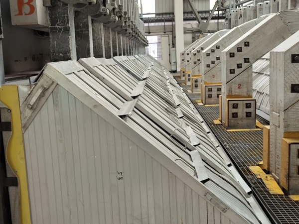 作為電解槽的重要組成部分,槽罩板一方面可對(duì)電解槽起到保溫作用,另一方面可以起到防止電解槽內(nèi)煙氣和粉塵外溢的作用。由于槽罩板長(zhǎng)期在高溫環(huán)境下受熱,再加上換極作業(yè)過(guò)程中頻繁搬動(dòng)、碰撞,極易發(fā)生變形,導(dǎo)致電解槽整體密封性和保溫性下降,額外增加電解槽熱損耗并存在較大的安全隱患。 為保證安全高效生產(chǎn),徹底攻克槽罩板變形這一難題,經(jīng)過(guò)車(chē)間技術(shù)革新小組認(rèn)真分析后,發(fā)現(xiàn)造成槽罩板重復(fù)變形的要因是槽罩板受熱后強(qiáng)度問(wèn)題沒(méi)有得到根本性解決,原槽罩板只設(shè)計(jì)有3根橫向加強(qiáng)支撐,豎向未加支撐,這就導(dǎo)致槽罩在長(zhǎng)期受熱和外力作用下易發(fā)生橫向塌陷變形,而且槽罩板第一和第二支撐部位由于靠電解槽殼面較近,一旦出現(xiàn)塌殼冒火現(xiàn)象火苗將直接灼燒在該部位,由于槽罩板為鋁合金材質(zhì),熔點(diǎn)較低,短時(shí)間內(nèi)就會(huì)被燒灼破損。因此,為增加槽罩整體強(qiáng)度,技術(shù)革新小組首先采用長(zhǎng)度1米不銹鋼U型管對(duì)槽罩板側(cè)部進(jìn)行鑲嵌固定用以大幅增加槽罩板豎向強(qiáng)度,同時(shí)采用69X67厘米的1毫米厚方形不銹鋼板在距底邊32厘米處進(jìn)行襯墊,避免火苗直接灼燒槽罩板。 經(jīng)過(guò)一段時(shí)間現(xiàn)場(chǎng)試用,采用這種方法維修后的槽罩板具有防火、抗變形效果好等特點(diǎn),使用壽命預(yù)計(jì)比原有槽罩板延長(zhǎng)2-3年。截至7月中旬,電解一車(chē)間共維修槽罩板2240塊,預(yù)計(jì)可為公司節(jié)約生產(chǎn)成本約100余萬(wàn)元。 |