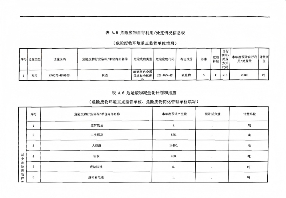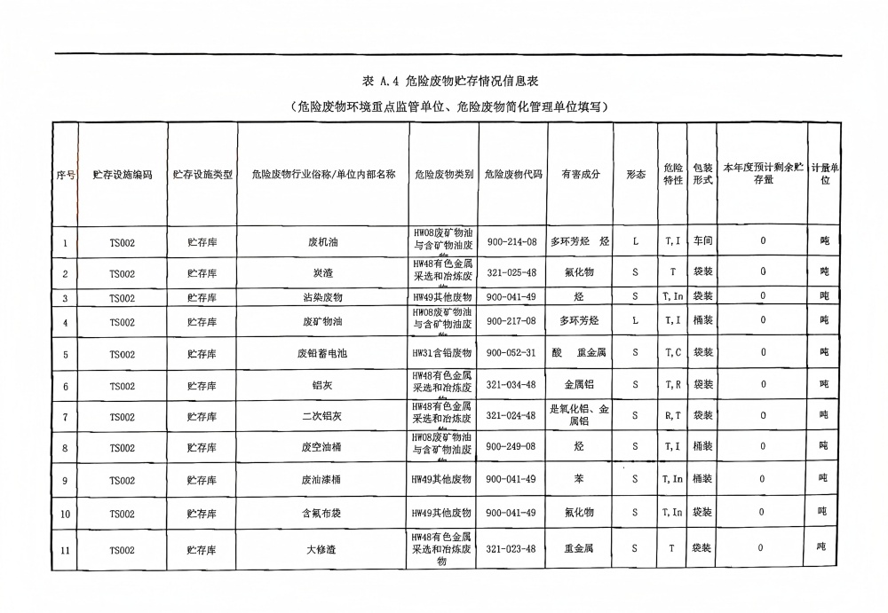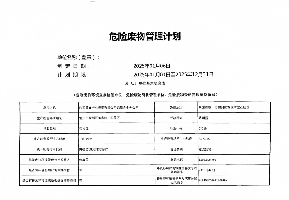 2025年危險廢物管理計劃(鋁鎂合金分公司)